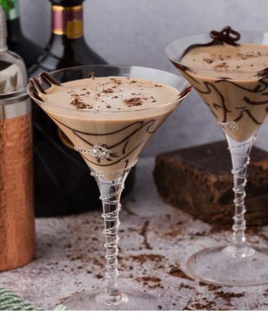- Drizzle chocolate syrup inside the martini glasses then add chocolate syrup to a shallow plate and coat the rims of the glasses.